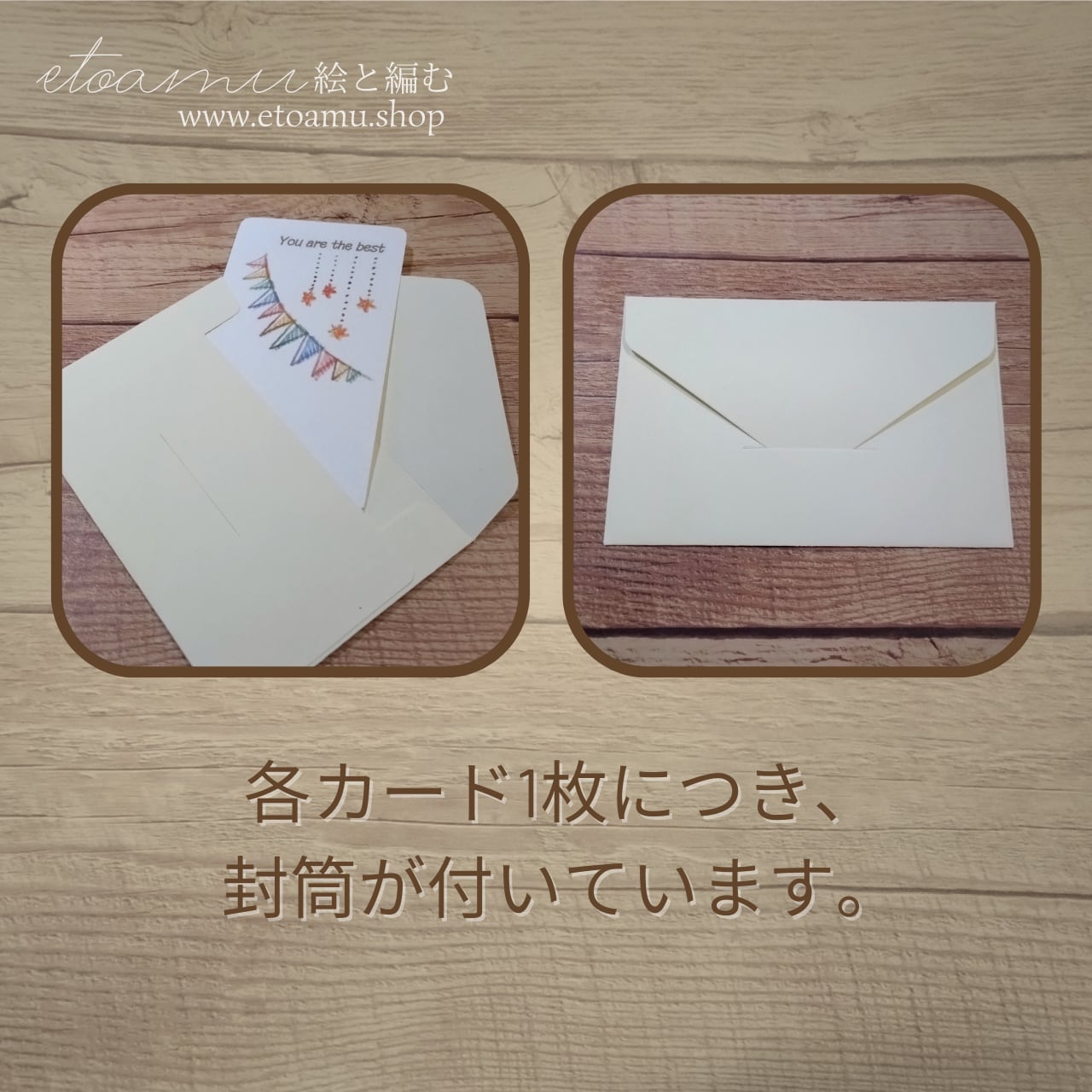 *+:。.。【8枚セット】心温まるワンポイントイラスト・メッセージカード | [封筒付き]インクジェット印刷 。.。:+*