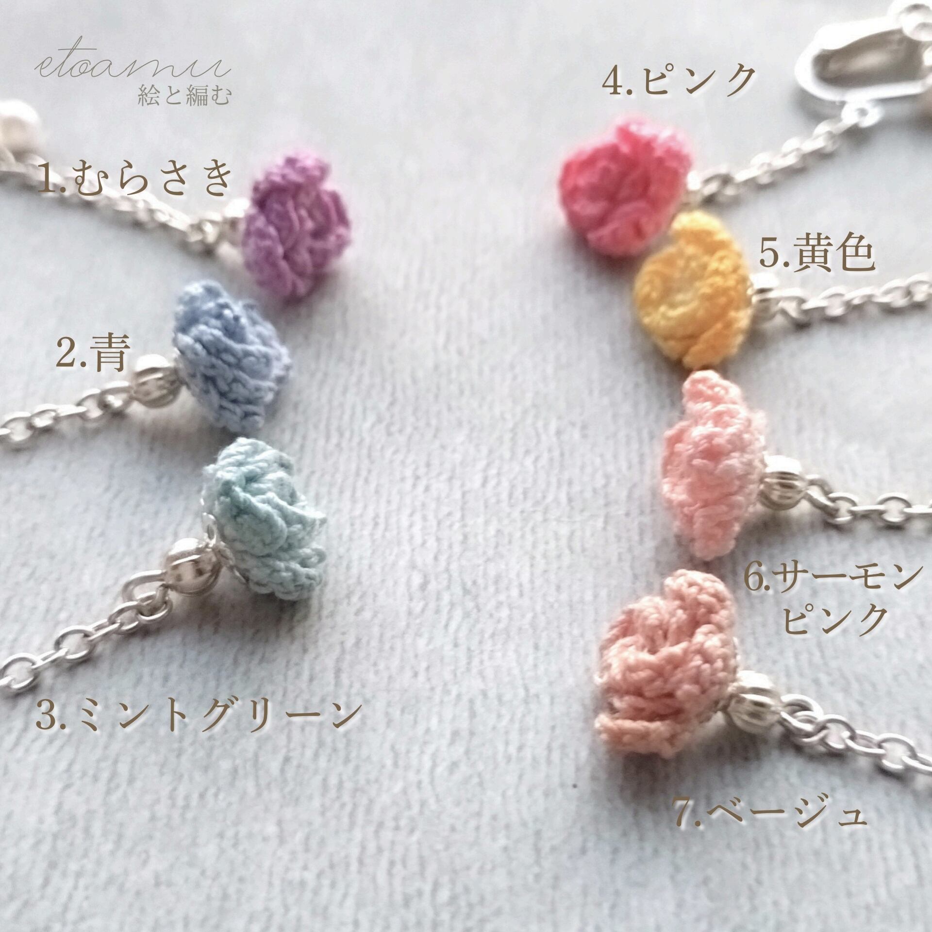 こちらは「耳に花いちりん」シリーズ/春の7色展開です。