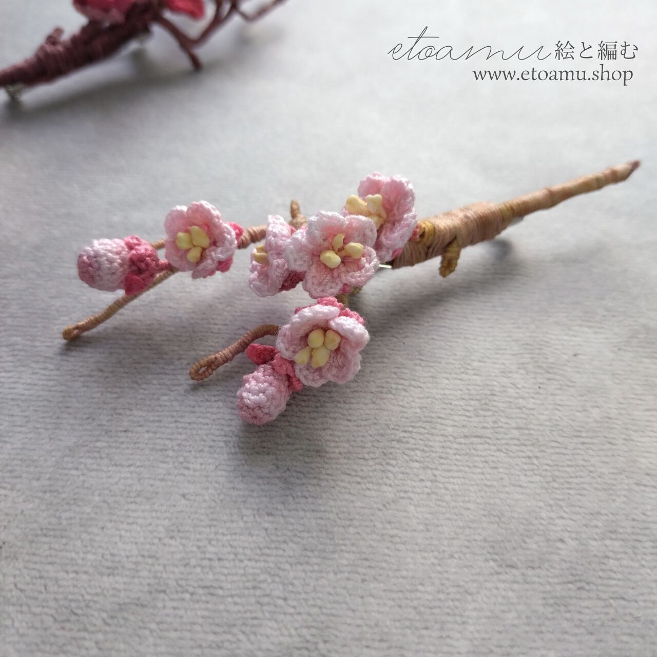 #梅の花#紅梅#薄桃色#春のアクセサリー#和の花#和装アクセサリー#卒業式#入学式#和風ブローチ#花のブローチ#手染め#レース編み#成人式#お祝いギフト#母の日ギフト