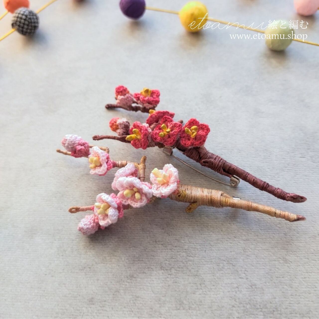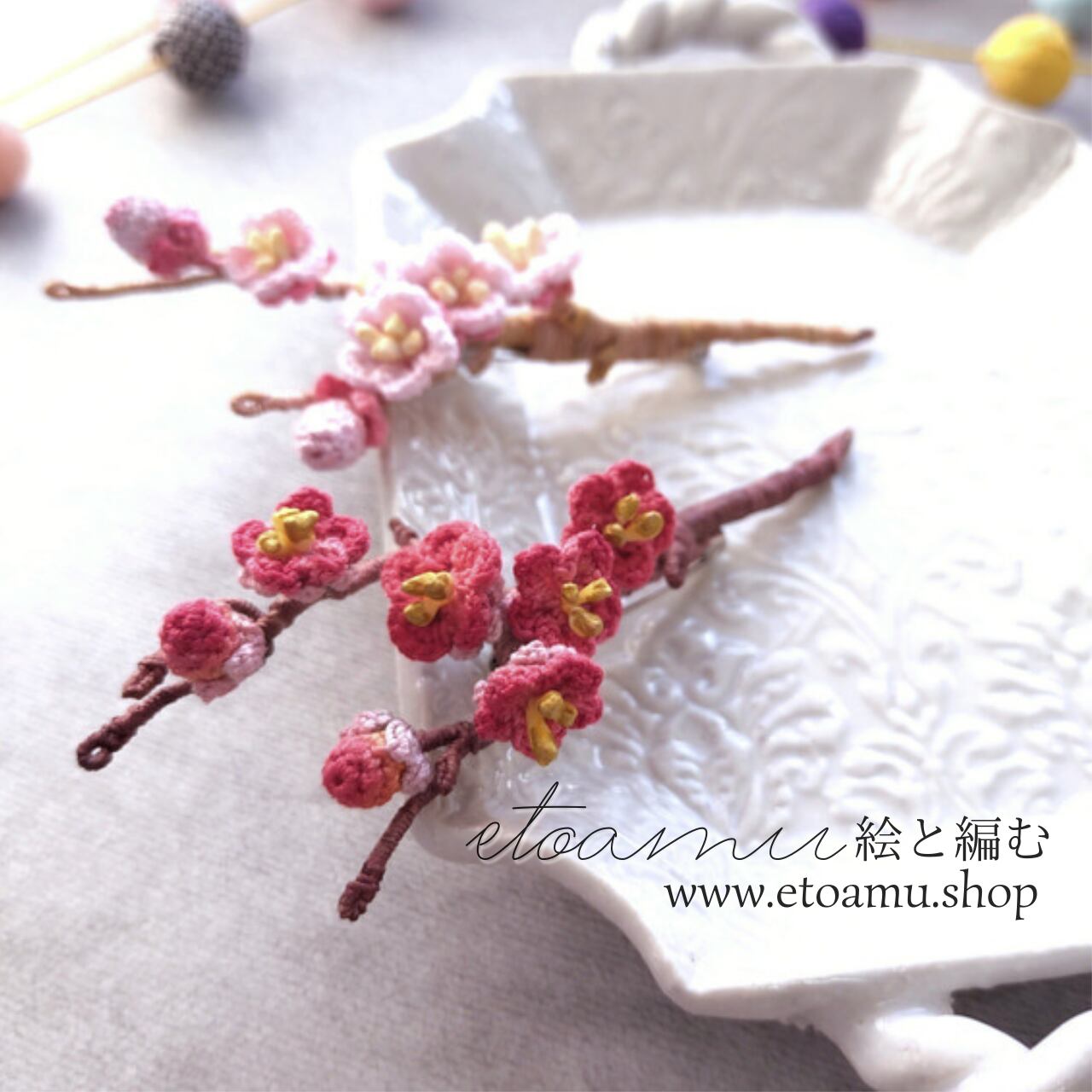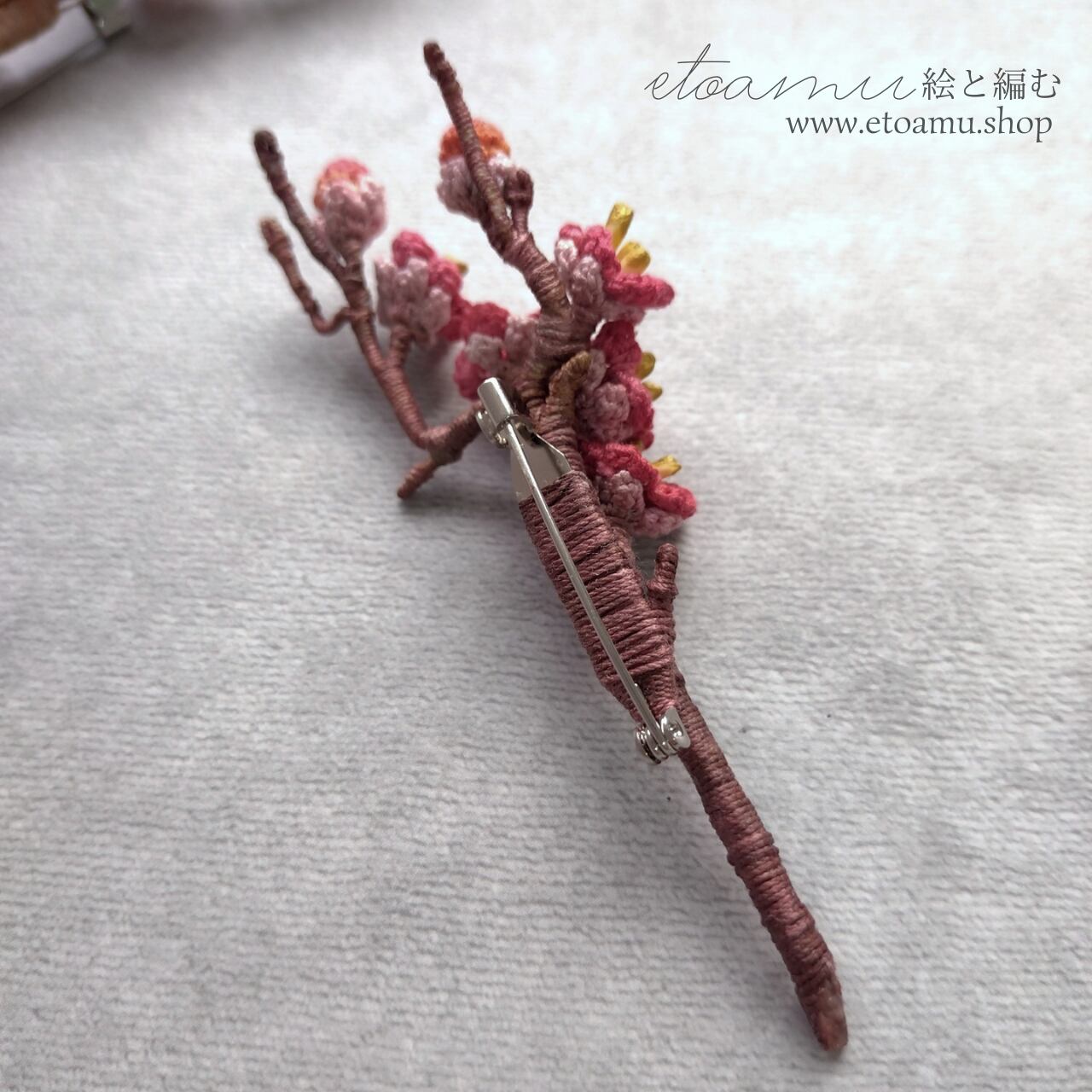 春を告げる和の花、梅を手染めレース編みで丁寧に仕上げたブローチです。