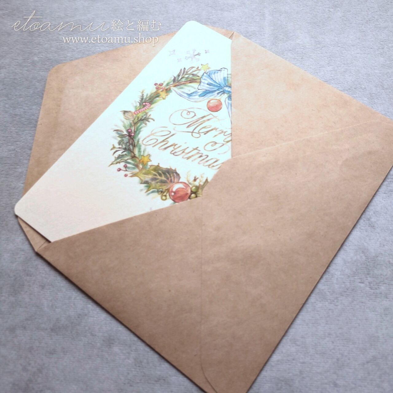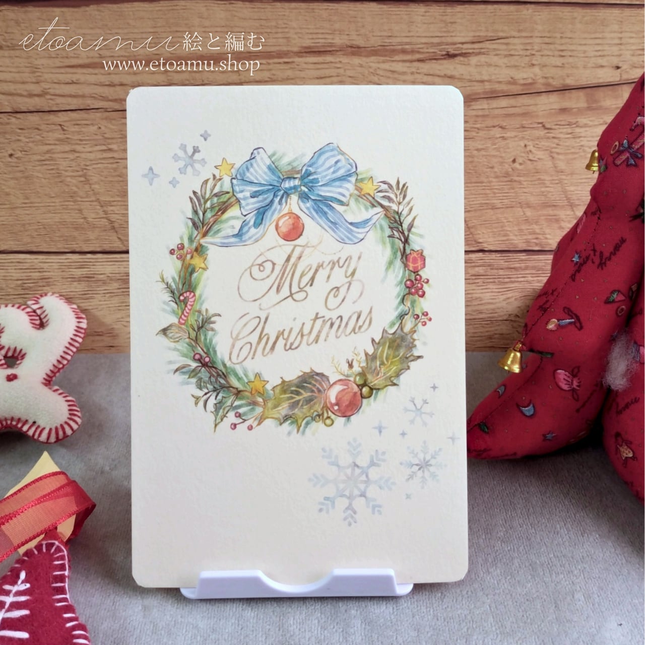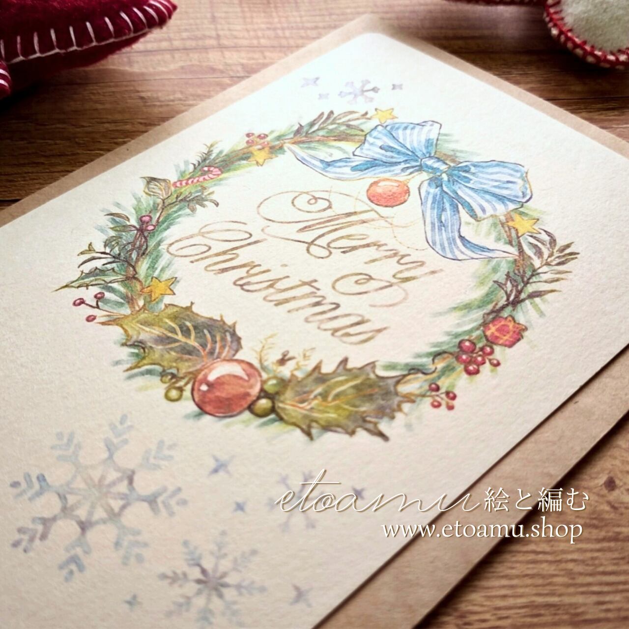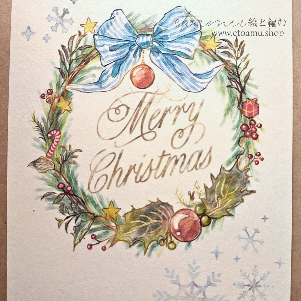 カード イラスト 手描き クリスマス 冬 冬限定2025 即納クリスマス2025 グリーティングカード ポストカード 水彩風 リース リボン インテリアカード 飾れるカード ギフトに添えるカード プレゼント