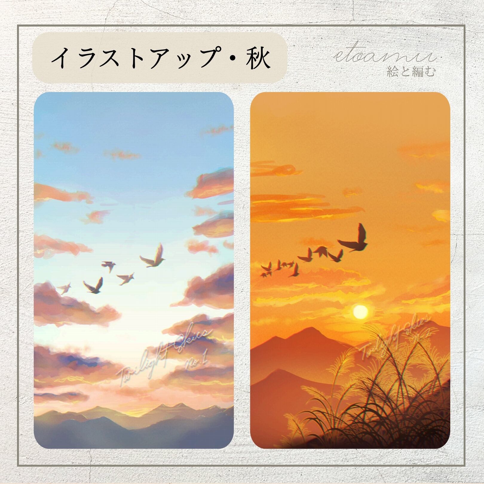 【秋冬セット】渡り鳥イラスト秋・冬、計4種/スマホ壁紙セット[季節の空✕渡り鳥・待ち受け](iPhone・Android対応) | etoamu-絵と編む|花のアクセサリーとイラスト雑貨のオンラインショップ