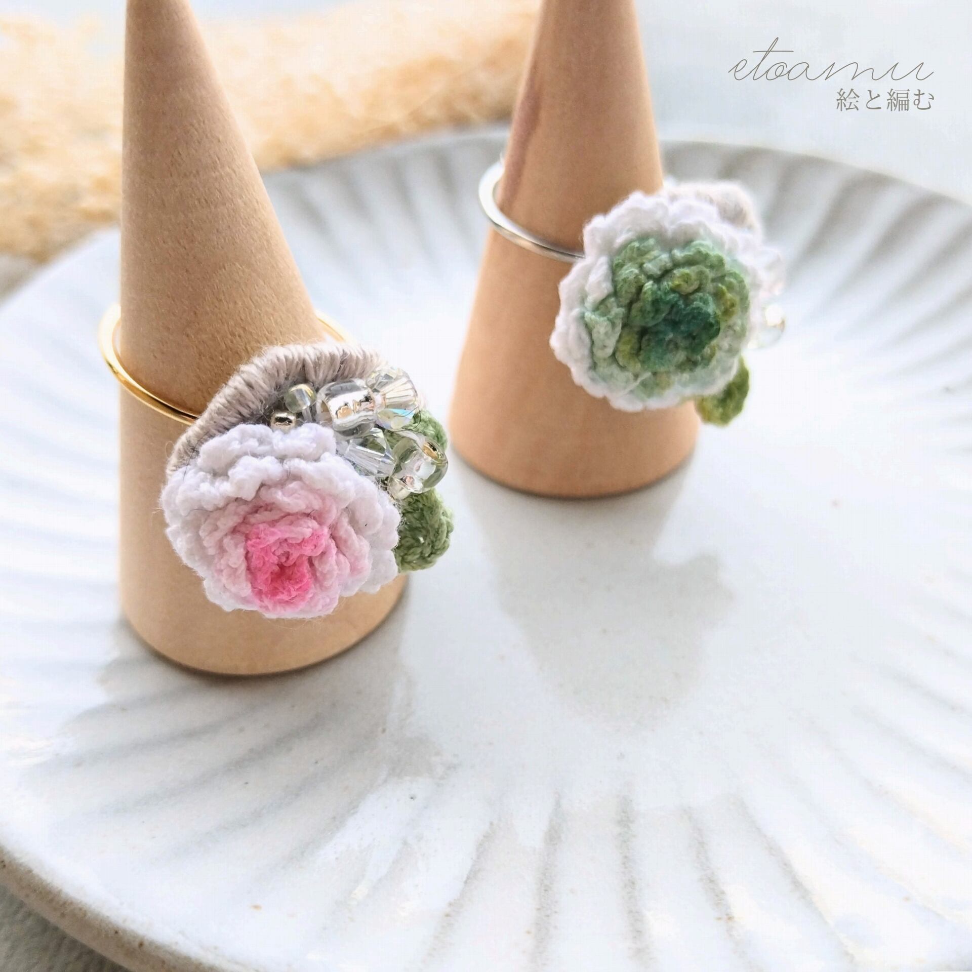 #シロツメクサ #花の指輪 #朝つゆ #レース編み #手染め #透明感 #フラワーアクセサリー #ナチュラル #春アクセ #ギフト #ゆびに花いちりん #大人かわいい