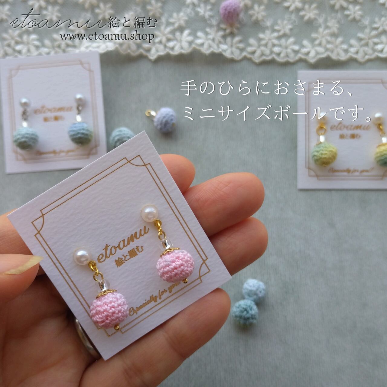 小さなレースボールを使った、やさしい色合いのアクセサリーシリーズです。